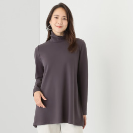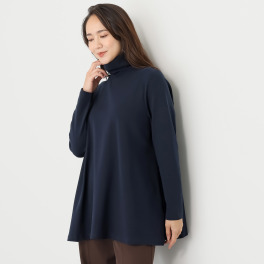 メリオン もっちり至高の着心地 スーピマコットン混 Aラインシルエット ハイネックプルオーバー