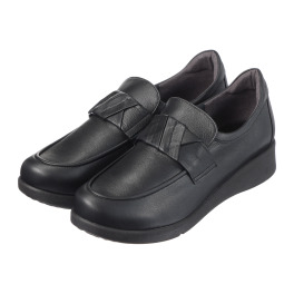 足がスッキリ見えるローファーで、シャープな印象を作れます。