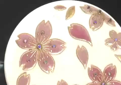 上方象牙 象牙 サクラ蒔絵 ペンダントブローチ -
