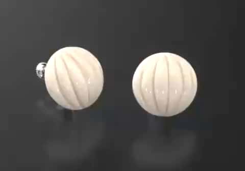 上方象牙 象牙 筋彫り ラウンドイヤリング -