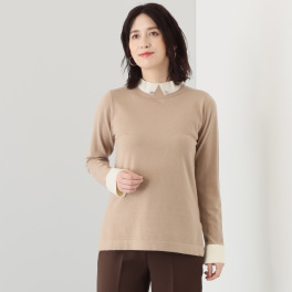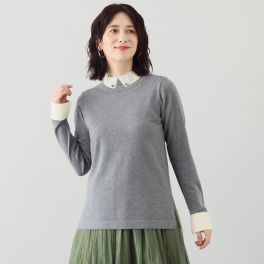 バーチ ドゥエ 快適着心地! トロンプルイユ スタンドボタンダウン風 ニットプルオーバー