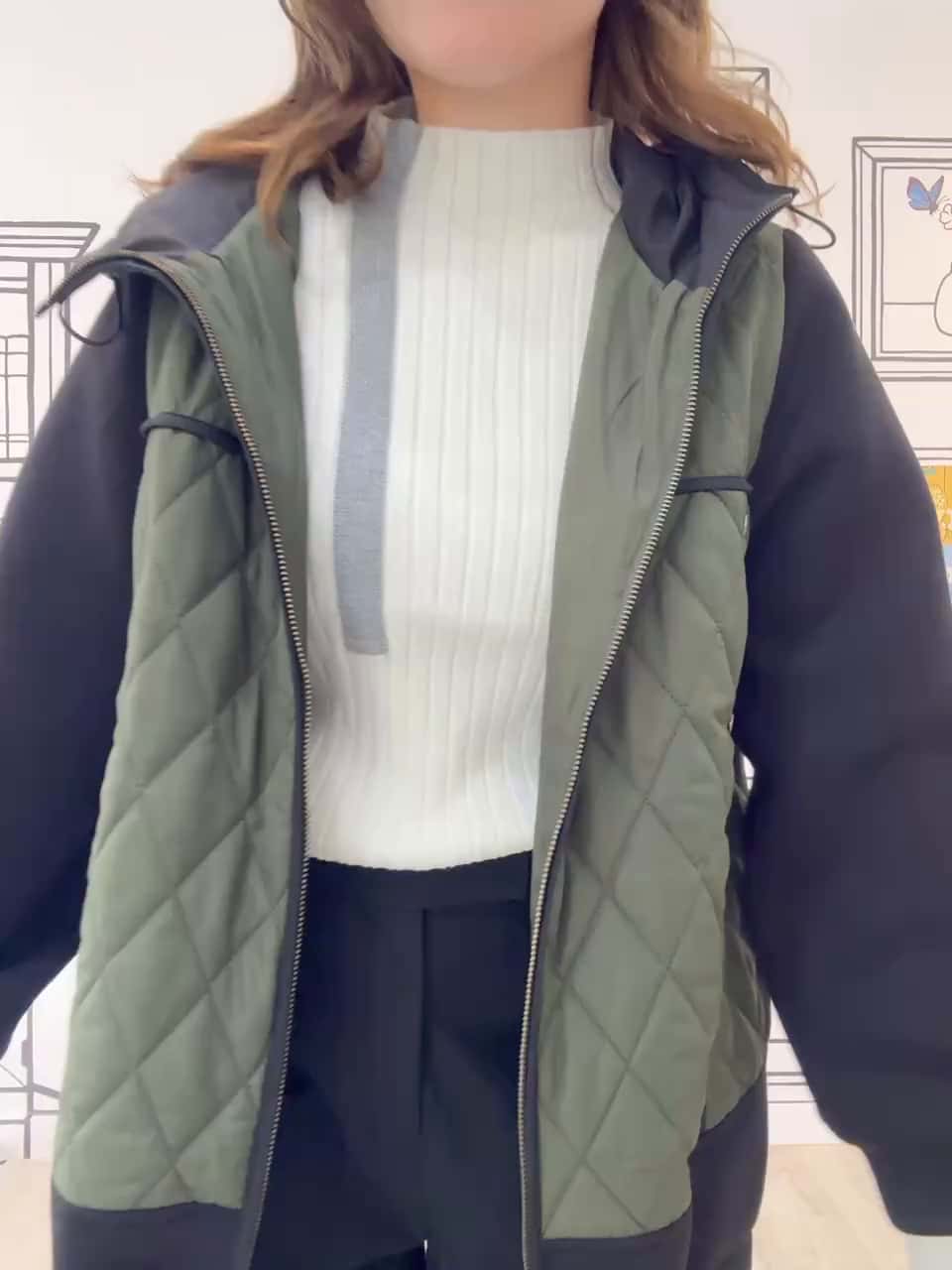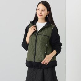• エムズ スタイル キルト&ダンボール切替 パイピングアクセント Aラインシルエット フーディーブルゾン