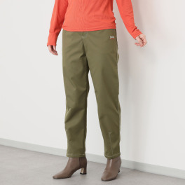 ヒップのハート刺しゅうがポイント! さりげない配色ステッチがアクセントになった大人かわいいパンツ。