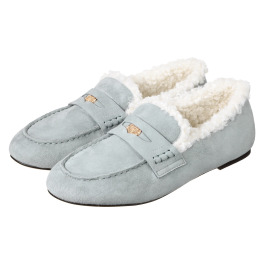 あたたかさと上質さを兼ね備えた大人の冬ローファーは、くるくるとしたカーリーなフェイクファー素材ときらりと輝くコインモチーフがアクセントに‼︎