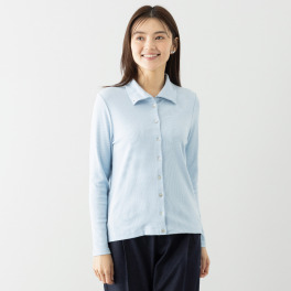 縦の細かな畝が生み出す、スタイルアップの魔法。ボタンの開け方で、さまざまな着こなしを楽しめる一着。