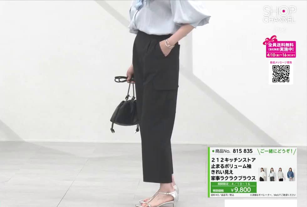 212キッチンストア 止まるボリューム袖 きれい見え 家事ラクラクブラウス
