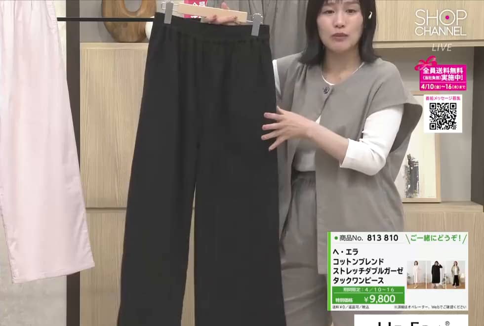 ヘ・エラ コットンブレンド ストレッチダブルガーゼ パンツ