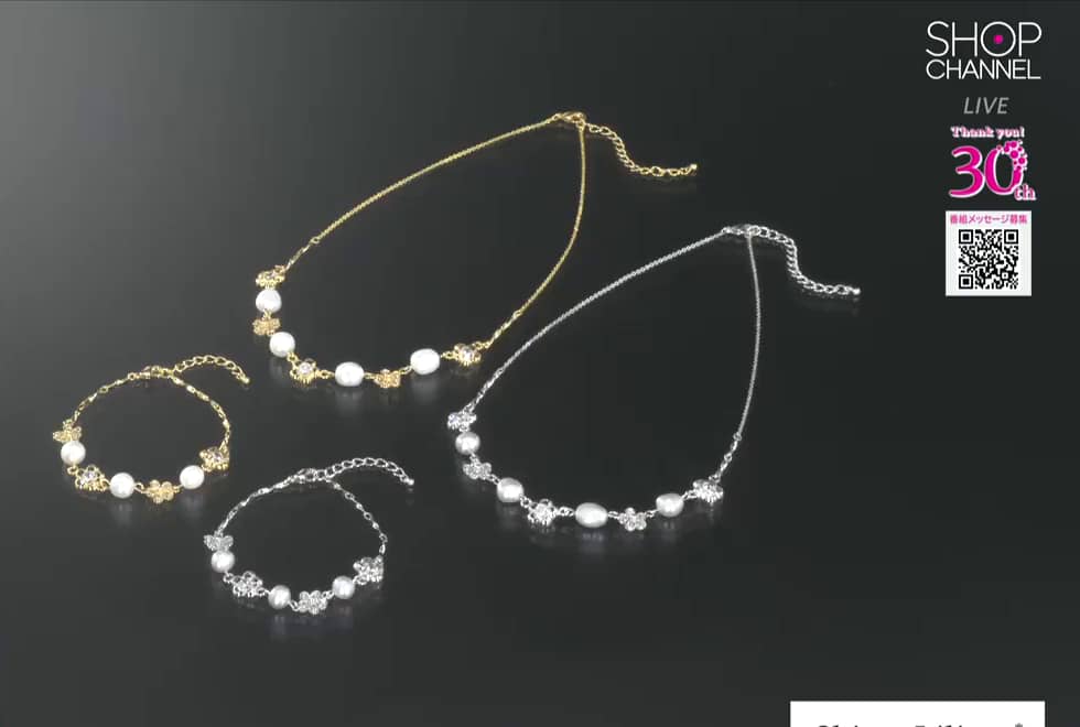 シマ・リリアーナ CZ&淡水パール フラワーモティーフ ネックレス/ブレスレット