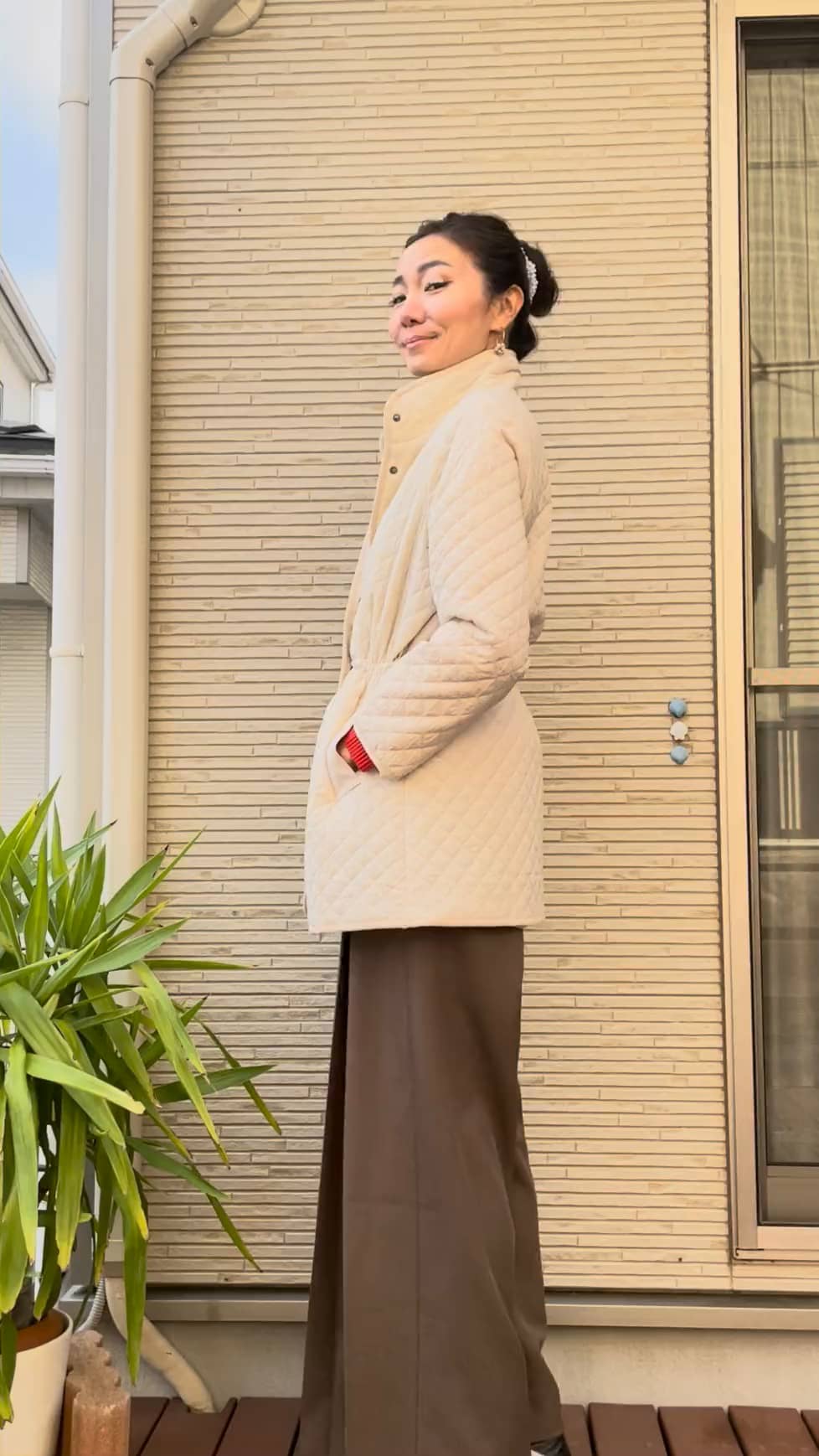 【今が1番活躍必須アイテム!持ち運びにストレスフリーな軽〜いあったかキルティングコート】着るだけで自信を纏う、榎本流黄金比が叶う沿岸スタイル「コースタルドライブ」のコート!秋冬のラインナップを12月6日からさらに公開です!着用しているのは、全てMサイズ。・細魅せシルエット中綿キルティングコート(アイボリー)・レザーライク使いタックワイドパンツ(ブラウン)・背中で魅せるマルチカラーニットトップス(ネイビー)・グリッターラメカシュクールブラウス(モカベージュ)