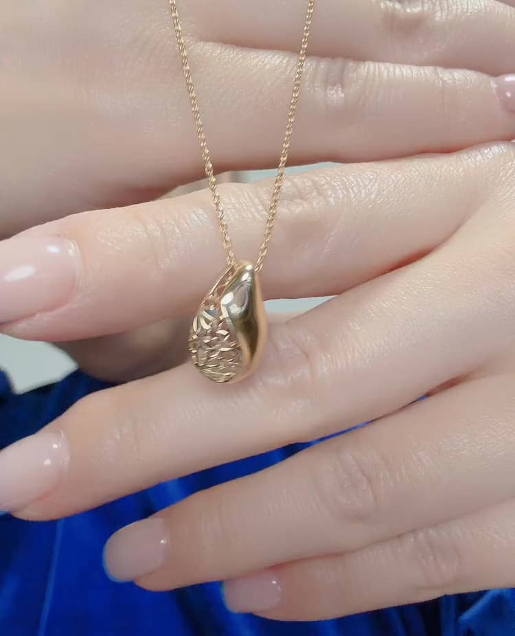ツルリとした滑らかなフォルムで洋服生地にも引っ掛かる心配のない良き付け心地! ドロップ型のぷっくりフォルムでデコルテの表情が一気に華やかになります! さりげないボリュームが品良く、日常を大人のセンスで彩りを!