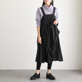 布が多くふわふわとしたデザインなのに、とても軽くて、体型もカバーできるのでいろんな服と合わせやすいと思います