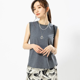 襟と袖がリブ仕様になっていて、カジュアルな印象で使えるタンクトップ。