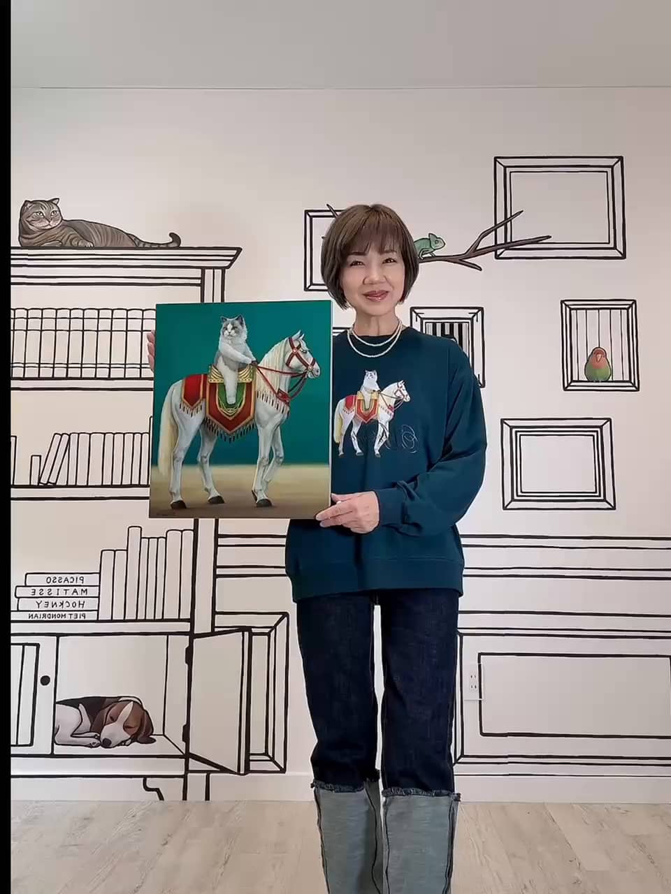 馬と猫プリントは油絵を描いていただきプリントにしました。 -