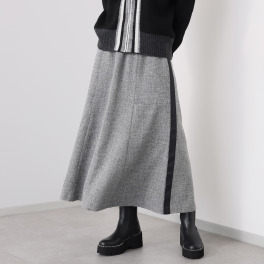 両サイドにラインが入っていてオシャレ感とスタイルをキレイに見せてくれます。ウエスト部分のゴムが太めになっているのでお洋服をインしてもいいし、アウトにしてもいいです。このスカートが1枚あればトレンド間違いなし!