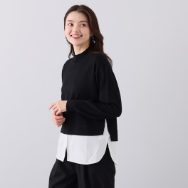 ハイネックで首元もすっきりと暖かく、冷え込む日にも安心♪