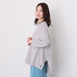 波打つようにたっぷり入ったドレープが特徴的なプルオーバートップスです!ゆとりのあるサイズ感じで身体のラインをひろいにくいので安心してご着用頂けます。肌触りの良い柔らかなポンチ素材で着心地も抜群。セットアップで作っているテーパードパンツはもちろん、ボリュームのあるボトムスとも相性がいいので、使い勝手のよい一着です!