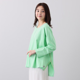 波打つようにたっぷり入ったドレープが特徴的なプルオーバートップスです!ゆとりのあるサイズ感じで身体のラインをひろいにくいので安心してご着用頂けます。肌触りの良い柔らかなポンチ素材で着心地も抜群。セットアップで作っているテーパードパンツはもちろん、ボリュームのあるボトムスとも相性がいいので、使い勝手のよい一着です!鮮やかなミント色か気持ちをあげてくれます。