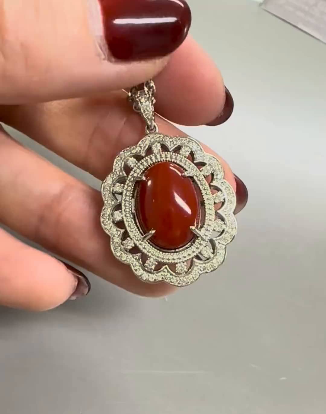 プラチナをたっぷり使用した大ぶりなペンダントネックレスは、これ一つ着けただけで全体の印象を華やかにしてくれそうです。お付けしたチェーンも角線のケーブルチェーンを二重にダブル掛けした仕様なので安心感があります。同デザインのリングとのセット使いがおすすめです。