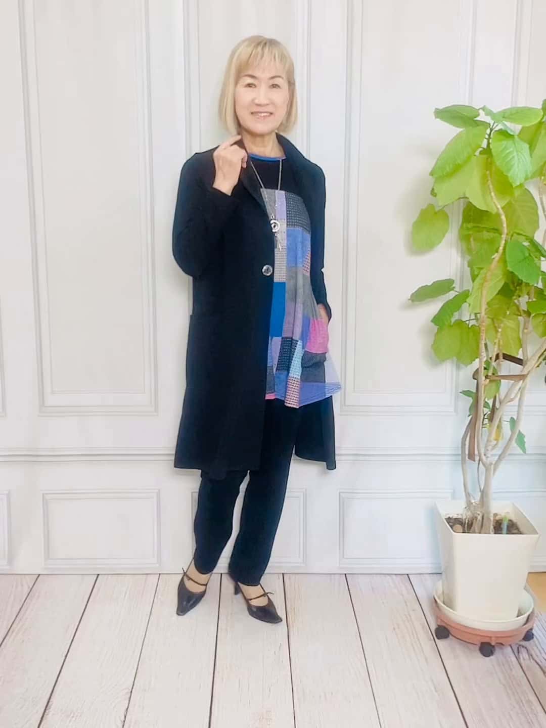 後ろ姿はスタンドカラーで背筋をすっきり見せ、