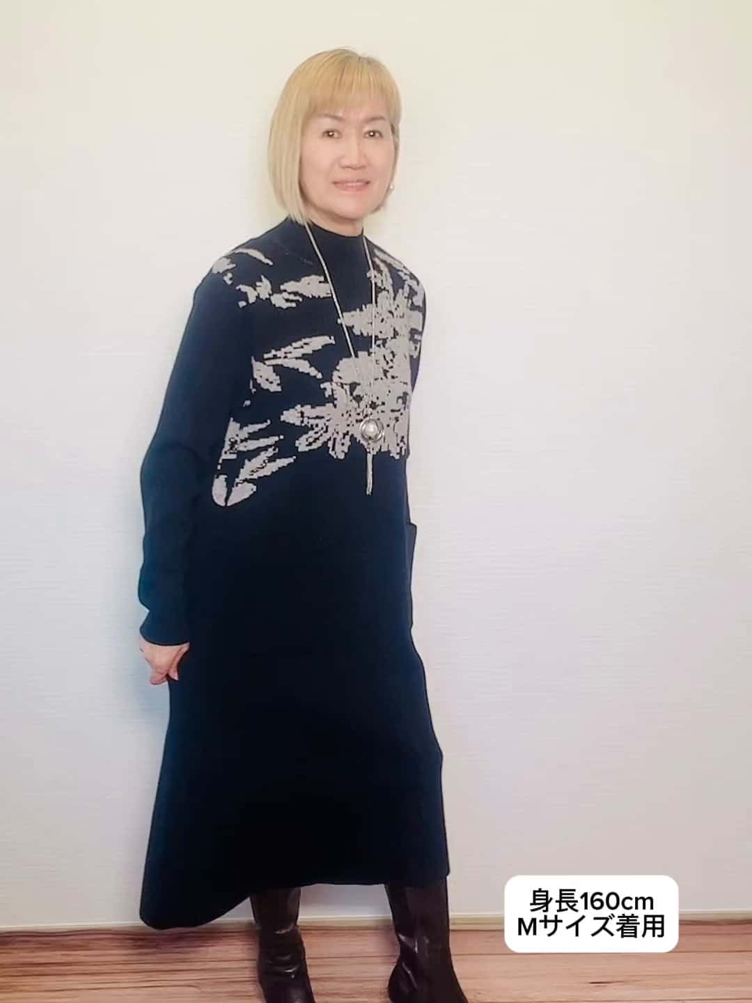 ○フラワージャカードニットワンピース ブラック冬のモノトーンやダークカラーに偏りがちな季節に、一枚で気持ちが明るくなる【凛とした華やぎ】を添えてくれるワンピース。ジャカード編みは生地がしっかりしているため、身体のラインを拾いにくく型崩れしにくい。単色の花柄は派手すぎず、大人の落ち着きと上品さがあります。柄が上に集まるため、視線が自然に上がり “顔まわりが華やかに見える” 優秀ワンピース。首元のゆとりが着る人も見た目も心地よい。 腰回りやお腹のラインを拾いにくく、体型を気にせず着られる“安心感”が強み。○ぬくねこ2ウエイバッグ可愛いだけでなく“遊び心のある大人の小物”感覚“持つだけで気分が上がる” 小さな相棒。大人の女性に似合う可愛さで、毎日のお出かけがもっと楽しくなるバッグです。ふわふわ素材が冬本来の温かさを思わせ、手元に華やぎと癒しを添えてくれます。身長160cmMサイズ着用