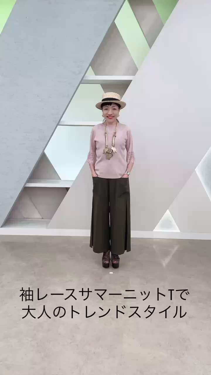 袖レースサマーニットTとエレガントカーゴで大人のトレンドスタイル -