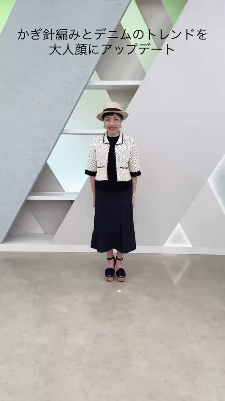 かぎ針編みニットとデニムを大人仕様にアップデート -