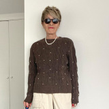 シャビージェンティール ケーブル柄 パール調ビーズ付 ニットプルオーバー