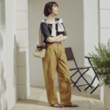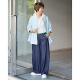 元町ゼラール しなやかチノ素材 タックアクセント スカート風パンツ