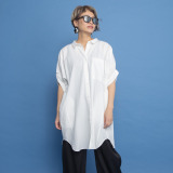 ヨーコモリモト コンパクトな襟で 着る人を選ばない デザインシャツチュニック