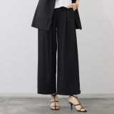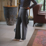 シャビージェンティール ツイード調 ワイドシルエット 裾ドローストリング付 プルオンパンツ