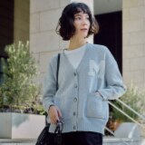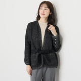マダムヒロコ ラインアクセント 配色Vネック ニットプルオーバー