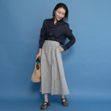 ヨシヨシ バイ ピージェイ 異素材切替 Aラインシルエット デザインフリルスカート