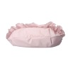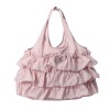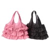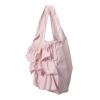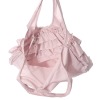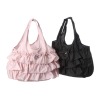■デザイン:丸いフォルムのエコバッグに当ブランドらしいフリルをたっぷりとほどこしました。物を入れるとさらにコロンとした形になります。日々のふだん使いとしてもお使いいただけるきちんと感のあるバッグです。