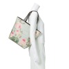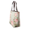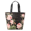ルドゥーテのバラ図譜の中でも人気の高い、ロサケントフォリオを大胆かつ贅沢に配したインパクトのある図柄を採用。スタイルをぱっと華やかに見せてくれます。シボ感のある生地にインクジェットプリントで写実的な絵画のようなバラを配したことで、毎日バラのお花を持って歩いてるような感覚になるバッグです。ハンドルはシボ感のある合成皮革を使用し、高級感を出しました。