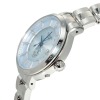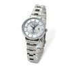 12時、3時、6時、9時の位置のインデックスは、花びらを思わせるカッティングをほどこし、女性らしさをさりげなく演出しています。ダイヤルはブルーを使用し、端整な雰囲気のフェイスデザインに仕上げました。
