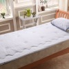 通常当メーカーでは敷きパッドは生産効率を上げるために、生地をまとめてキルティングを行いますが、本品は袋状に仕上げた生地に綿を詰めてから、縫製する際にコンピューターミシンで一枚一枚丁寧に仕上げています。また、ヘムを付けていないので端までふっくらした仕上がりです。