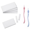 ハンドルに装着したスポンジに水を含ませ、スポンジの面で歯の表面を、側面で歯と歯の間を磨いて歯の表面の汚れをこすることで、簡単に歯の黄ばみを落とすことができるアイテム。