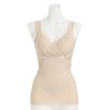 前身頃の裏当てを大きくしてバストの下から配したことで、お腹をすっきりと押さえます。