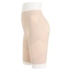 これは“The LYCRA Company”の“ライクラ(R)ファイバー”と“東レ(株)”のナイロン糸、“日清紡ホールディングス(株)”の綿糸を用いた素材です。太もも部分からウエストラインにかけてスパイラル状にパワーネットをほどこしたことで、より脚が上がりやすくなり、歩きやすさが向上しました。骨盤を押さえて前中心に引っ張るヒップラインのパワーネットと交差しており、骨盤をしっかりとサポートします。