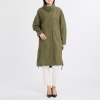コートとしてはもちろん、ワンピース風にも着こなせるよう前開きをボタン仕様に仕上げました。