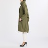 襟周りを広めに設定しているため、スタンドカラーを折り返して着用すると抜け感のある柔らかいイメージに。