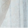 オーガンジー地にベージュカラーのラメ刺しゅうをほどこした華やかな生地と、高密度に織り上げ、ゴールドカラーの箔プリントを行った生地の二重カーテン。