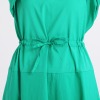 スカート部分は裾に向かって広がるフレアーシルエットにデザインし、エレガントな雰囲気に。