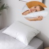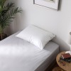高密度コットンは高級ダウンふとんやピローなどの側地などに起用される天然繊維です。その側地を採用することにより、優れた耐久性と、肌離れが良くさらりとした肌触りが期待できます。また、生地を高密度に織ることでダニの通過率が0%という結果が出ています(メーカー調べ)。