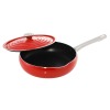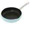 そろそろフライパンを買い替えたいな〜と思っていたタイミングで出会いました♪ショップで買ったものを愛用しており、同じのにしようかとも思ったのですが、可愛い色と深型、サイドの膨らみに惹かれて購入。主人がチャーハンや焼きそばを作ってくれることもあるのですが、調理後のガス台まわりの飛び散りに辟易としたので、購入してみたら、大正解!あんなに飛び散らせていたのに、許せる程度に。無駄な怒りを感じずに片付けられるようになったのも嬉しいです!