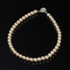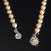 テリ、艶の美しい約7.5mm玉の貝パールを使用し、クラスプにも約4.5mm玉の貝パールを1粒あしらっています。