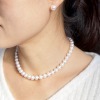 日本製の品質の良い貝パールで仕立てたネックレスの美しく上品な輝きは、さまざまなシーンにおいてファッションに自然と溶け込み、気品とやさしさを引き出してくれます。