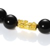 <幸石堂(こうせきどう)>より、黒水晶(モリオン)を連ね、24Kでお作りしたヒキュウをかたどったビーズをアクセントにあしらった、イラスティックブレスレットです。