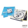 ホワイトカラーのタオルは、綿100%の先染めの糸を使用したジャガード織でふっくらと柔らかなタッチに仕上げました。あえて先に糸を染めてから織り上げて柄を表現することで、糸本来の柔らかさを生かしています。かわいらしい織りネーム付き。