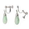 <マスターストーン>より、ワックス処理のみをほどこした、無着色・樹脂含浸なしのジェイダイト(翡翠)のドロップシェイプをあしらった、茄子モティーフのスウィングイヤリング/ピアスです。